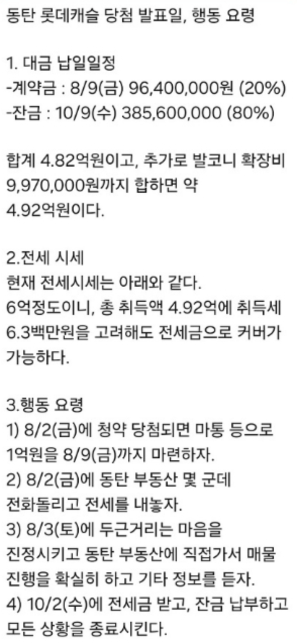 동탄 롯데캐슬 당첨자 발표 및 당첨 후 전략